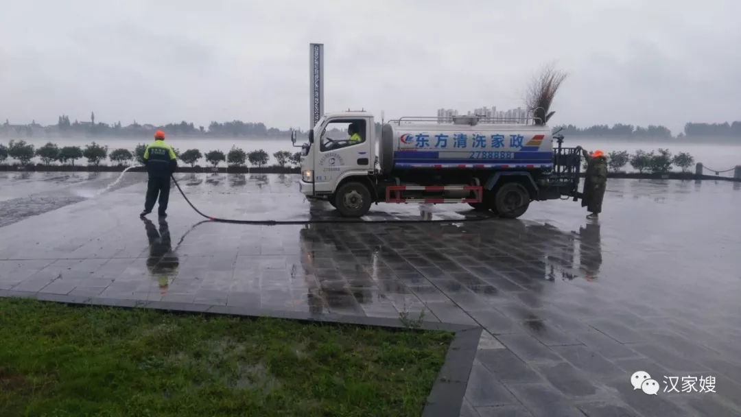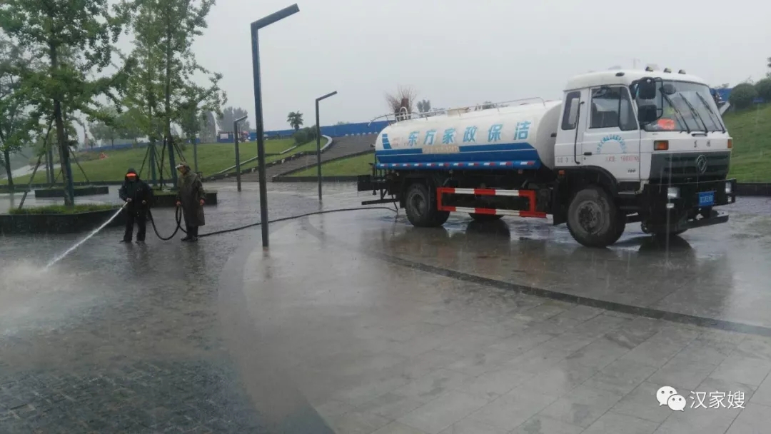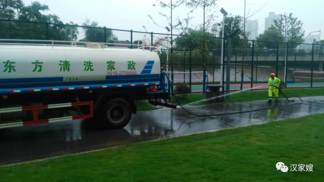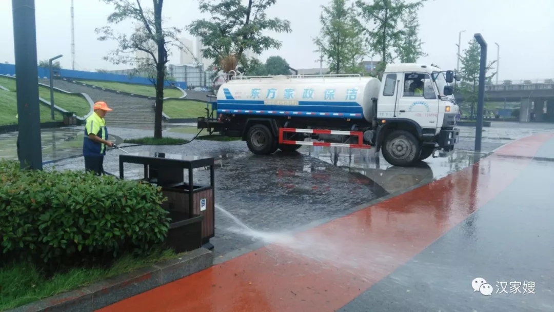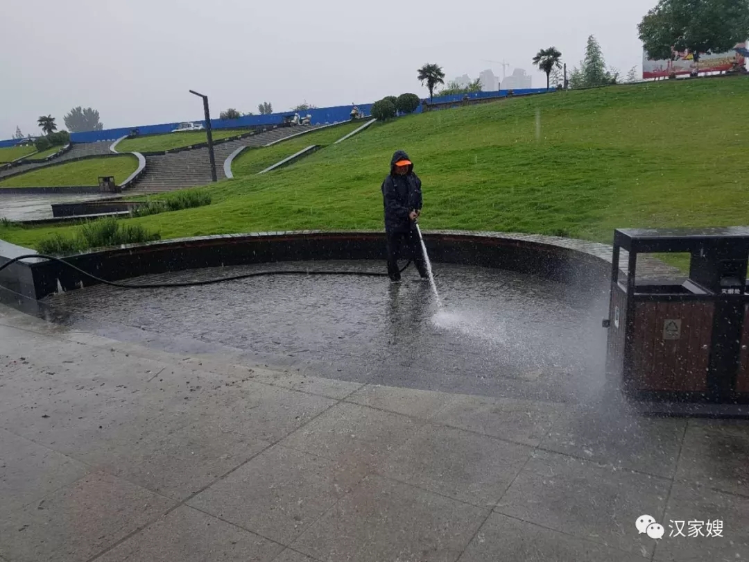 在滂沱大雨下,漢中東方清洗家政保潔員們依舊奮戰在一線,她(他)們冒雨清掃,發揚東方清洗家政敢打敢拼和不怕苦、不怕累的精神,與雨水為伴、與狂風為舞,奮力清掃景區道路,確保濱江新區、濕地公園雨后更加潔凈。