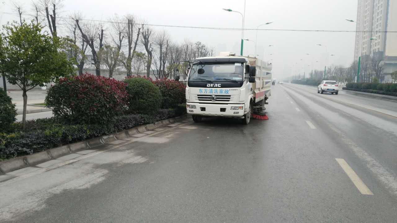 【東方家政】濱江新區(qū)路面清洗車(chē)工作中
