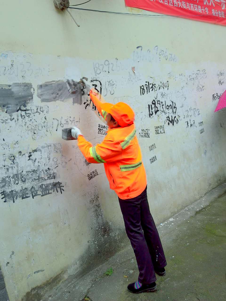 <span style="font-size:18px;">&nbsp;&nbsp;&nbsp;&nbsp;&nbsp;&nbsp;&nbsp; 汉中东方家政结合划分的区域特点，逐街逐路对辖区墙壁、线杆、广告招牌、地面、行道树上的野广告、乱贴乱画进行了清理。</span>