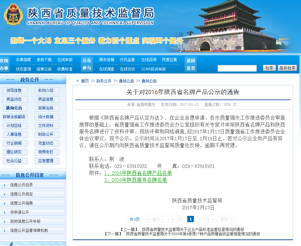 <p class="zheng">【东方家政】2016年陕西服务名牌名单</p>