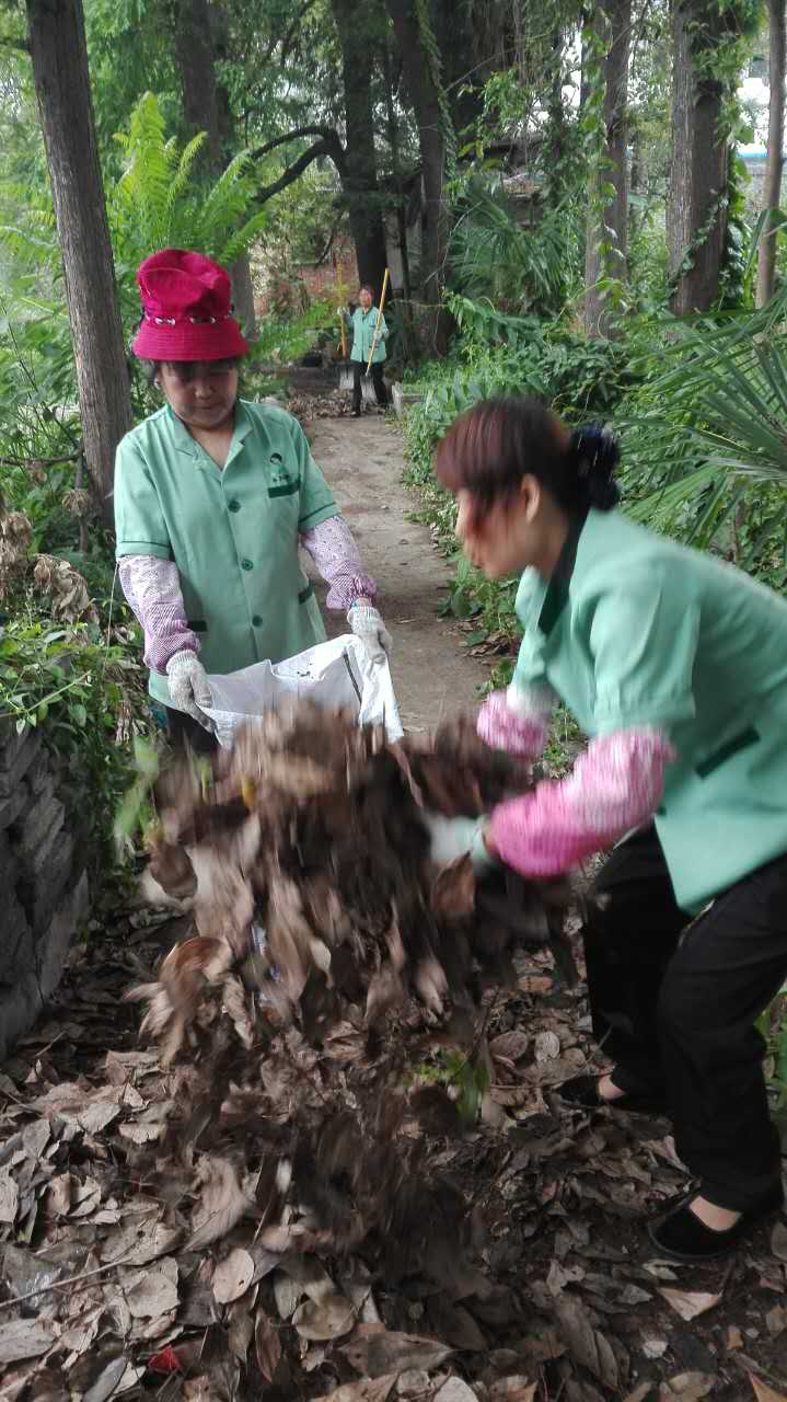 <span style="font-size:16px;font-family:'Microsoft YaHei';line-height:3;">满地的枯枝落叶，保洁人员不辞辛劳的，一点一点清理干净</span>