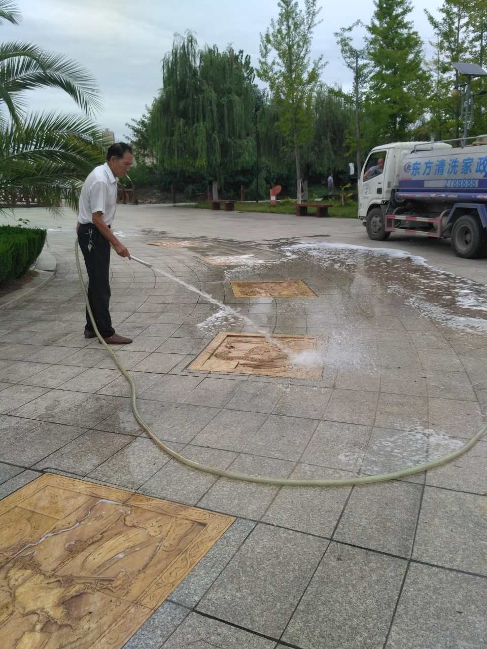 <p class="zheng">【东方家政】一江两岸广场清洗</p>